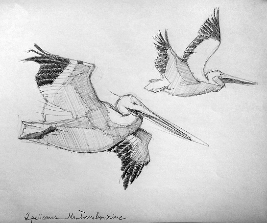 Ella riu i piula, 'i ara només 2 pelicans pel cel volant!'