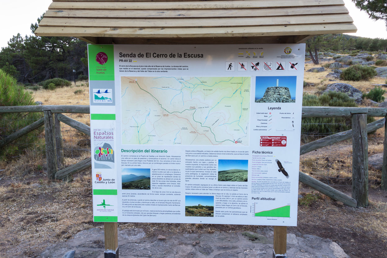 Subiendo por la pista asfaltada de las piscinas de Casillas, llegamos a este mirador y cruce de caminos (a la Escusa, al Pozo de las nieves, y a las Cruceras).