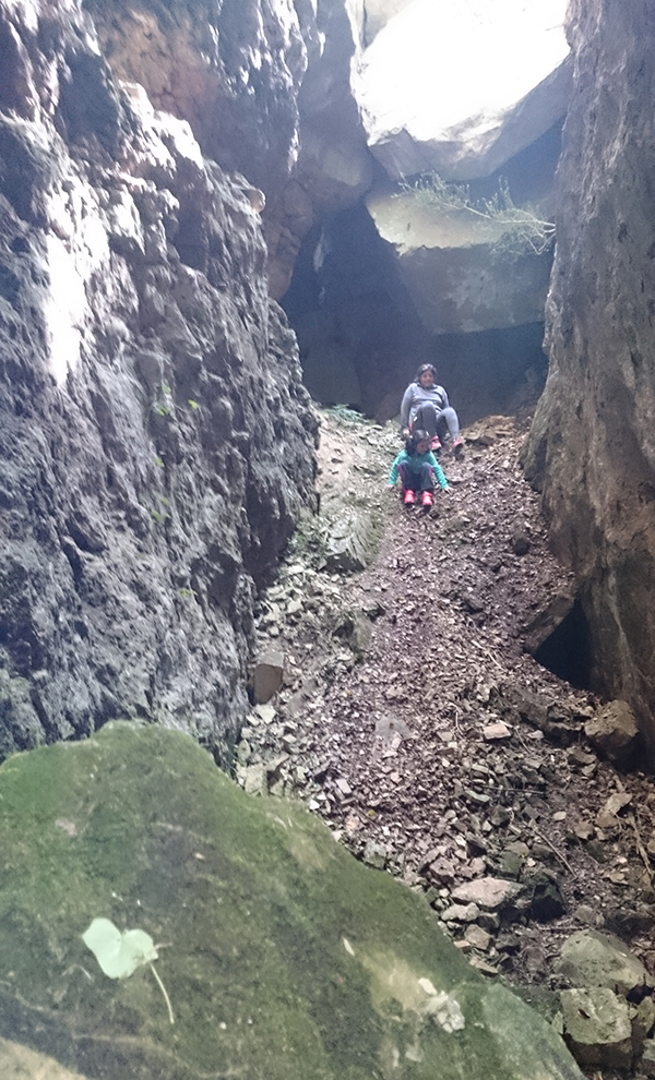 Sortint del forat del pas amagat dels Grans Avencots amb forts desnivells... com sempre