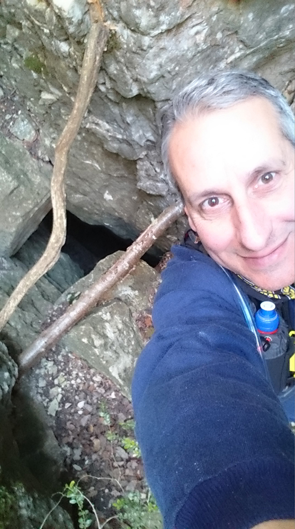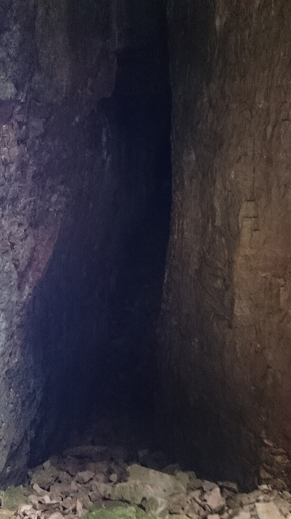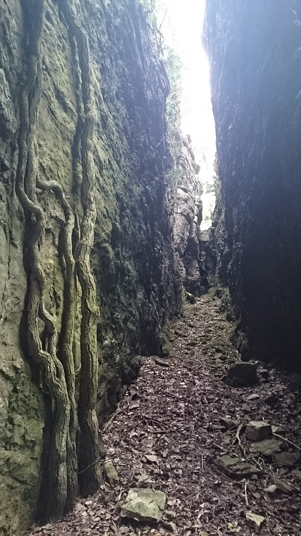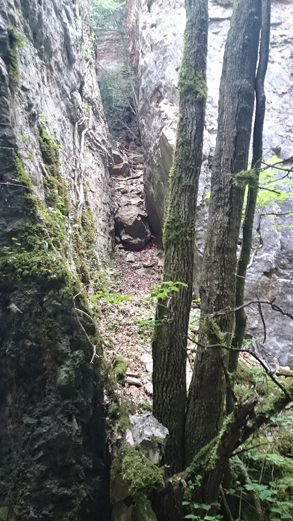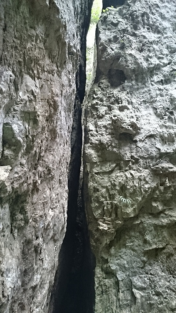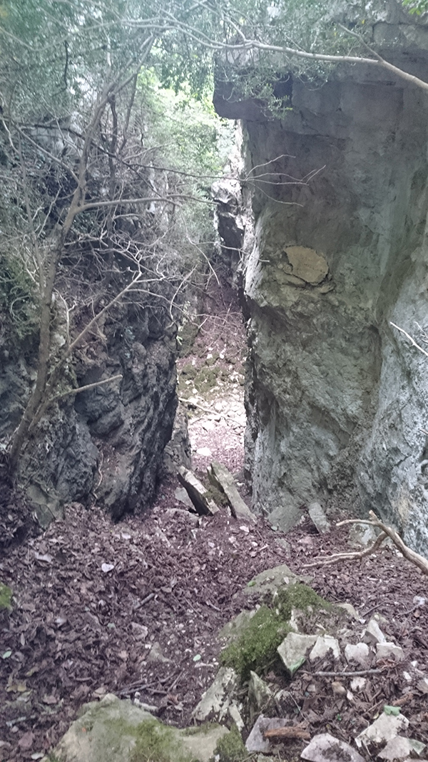 Aquest pas és molt estret però es pot passar, si es fa de baixada en l'últim tram cal ajupir-se, millor no fer-ho anant sol.