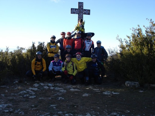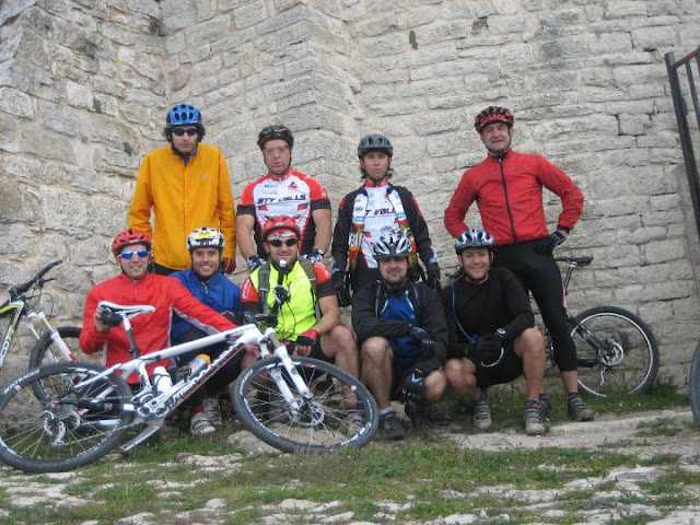 Les 7 del matí a l'estació de busos i 9 paios amb les seves bicis a punt per encarar el repte. Fotos de rigor i cap a Alcover pel Pont de goi. Ritme suau fins a l'ermita del Remei, on algú agafa aigua i som-hi, primera megarampa del dia, la que porta a les pedreres. Super rampes de fins al 25%, i ves per on que el kim va i punxa ...per llantasso. Un a mica de moc verd per la muntanya, i el mc Guver yeti que fa un apanyo amb la cuberta foradada.