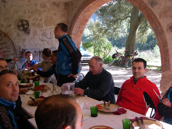 Esmorzar de final de temporada 2008 al mas Corbella despres de fer el circuit (o part del circuit) de la marxa en BTT Vall del Glorieta.