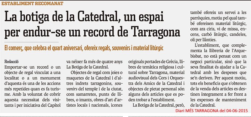 Article commemoratiu dels 4 anys d'existència de La Botiga de la Catedral.