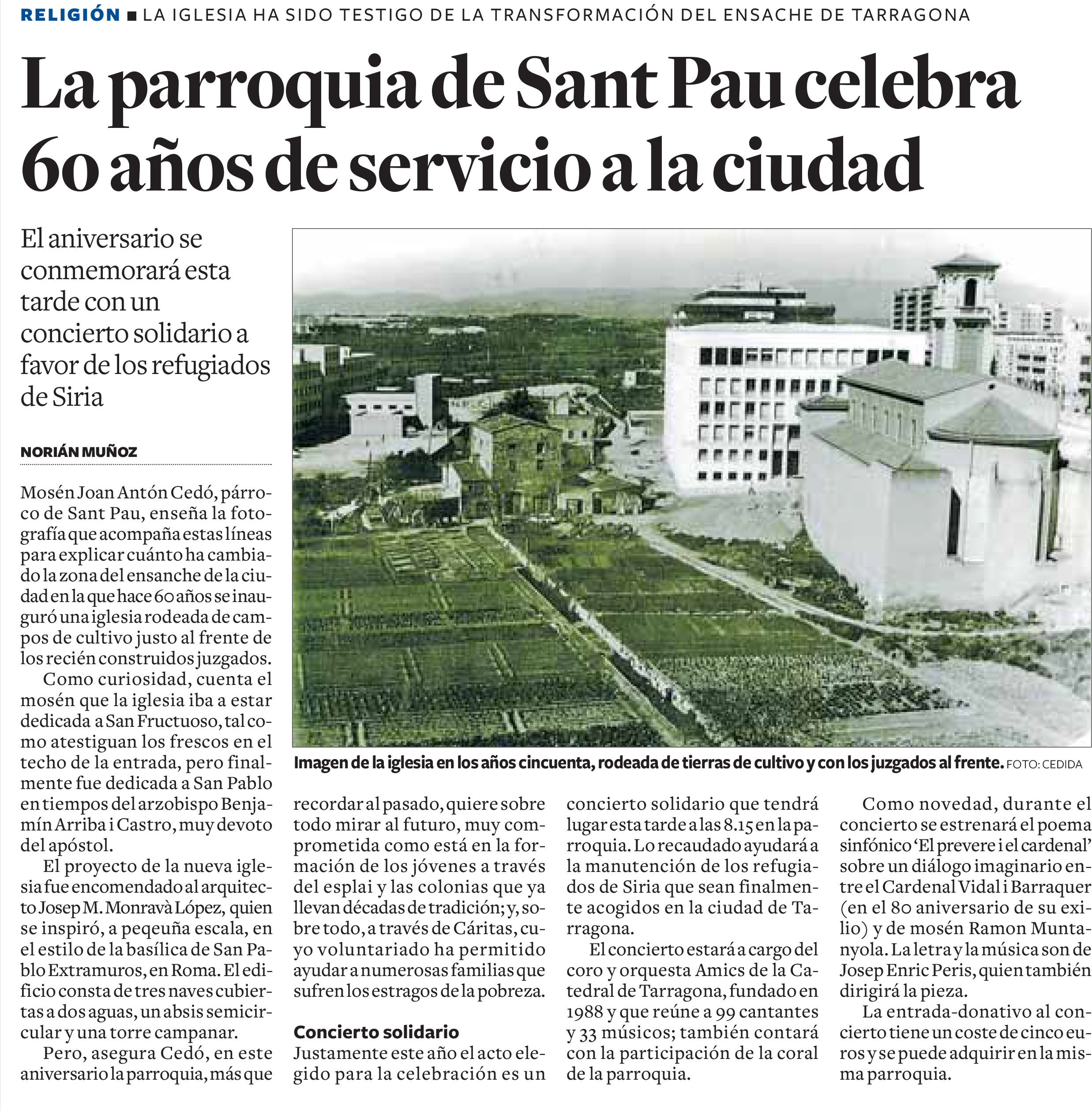 El 60è ANIVERSARI de la PARRÒQUIA de SANT PAU i El CONCERT SOLIDARI campanya pro-refugiats.