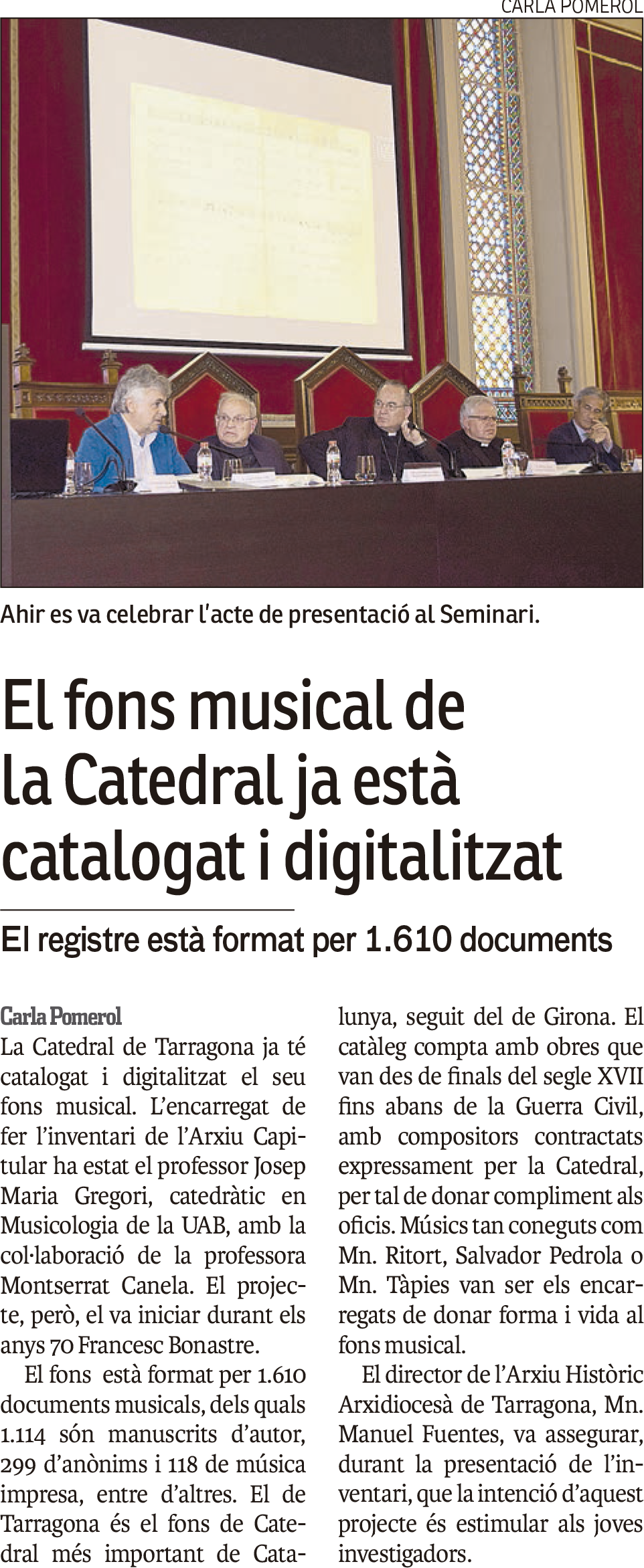 Presentació de l'INVENTARI MUSICAL de la Catedral de Tarragona.