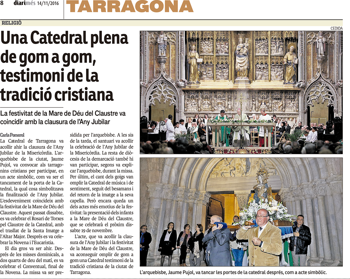 CLAUSURA ANY JUBILAR de la Misericòrdia i FESTA DE LA MARE DE DÉU DEL CLAUSTRE.