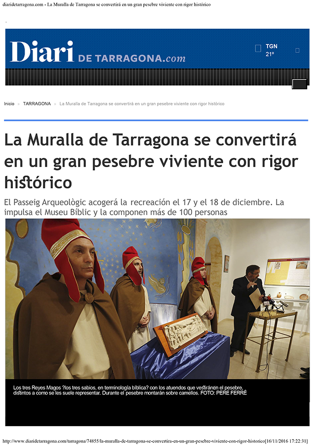 LA MURALLA DE TARRAGONA se convertirà en un gran PESEBRE VIVIENTE, con rigor histórico.