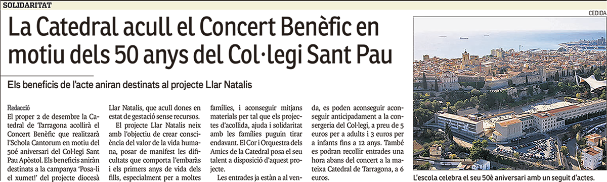 CONCERT SOLIDARI amb motiu dels 50 anys del Col·legi Sant Pau de Tarragona.