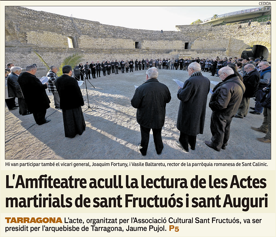 Lectura de les Actes Martirials dels Sants Fructuós, bisbe i Auguri i Eulogi, diaques, a l'amfiteatre de Tarragona.