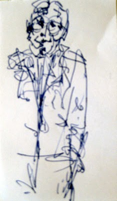 Posa amb marxa al xec xec de les tisores i picant amb la pinta fa un sorellet insistent (peg peg xec xec), enllestirà la feina de seguida, és calb, només té pèl pels costats.